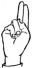 На ћирилици написано ДАРИЈА ЧИБУКОВАЦ састоји се из 15 слова [?]. Исписано ћириличном једноручном азбуком за глувонеме: